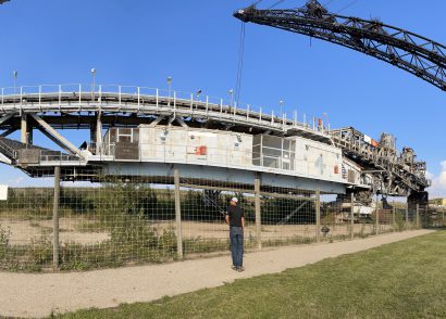 After passing the drive-in theatre, there’s a bathroom stop, and a set of doors to head outside if you want to take in the mining machines now (we did it after).